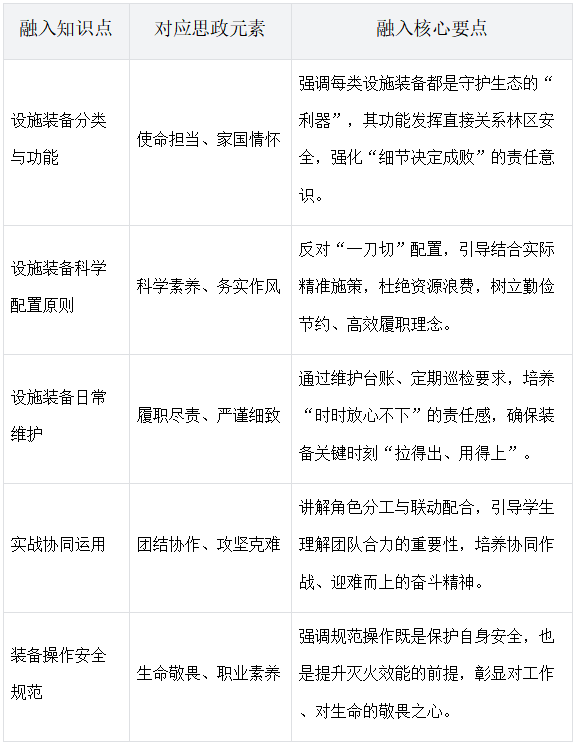 森林草原防火技术专业《森林防火设施与装备—森林防火设施与装备的合理配置及实战应用》课程思政课堂教学设计