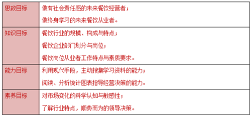 餐饮部运营管理是葡萄酒营销与服务及酒店管理专业主要专业必修课程之一。作为酒店盈利的支撑部门之一,餐饮部门的经营管理对酒店的收益、竞争乃至生存都有着举足轻重的影响。作为未来酒店高等人才的储备军,通过本课程的学习,使学生掌握现代饭店餐饮管理的特点、内容及方法,培养学生解决餐饮管理中所面临的各种问题的能力;还要掌握现代饭店餐饮管理的基本理论和方法,把握餐饮业务经营的发展趋势和科学管理方法的运用。通过教学,将有利与学生在理论研究及实践操作上有较大的发展和提高,以适应我国旅游业、饭店业和餐饮业经营管理飞速发展的趋势,使学生成为一名称职的高级管理和实践操作的合格人才。